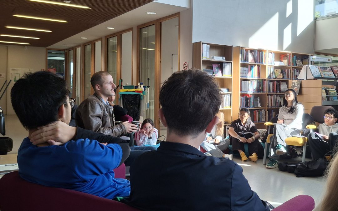 Pour les élèves de 2nde 3, le vendredi 17 octobre a marqué la deuxième étape du projet d’éducation artistique et culturelle (PEAC) autour des « milieux ». Silvère Jarrosson, artiste invité du Muséum d’Histoire naturelle pour l’exposition Désert, est venu à leur rencontre au lycée. Il leur a présenté son parcours de peintre, son processus de création, ses sources d’inspiration ainsi que sa vision de l’art. Il a également pris le temps de répondre à leurs nombreuses questions et d’inscrire de petites dédicaces dans leurs carnets d’explorateur.
